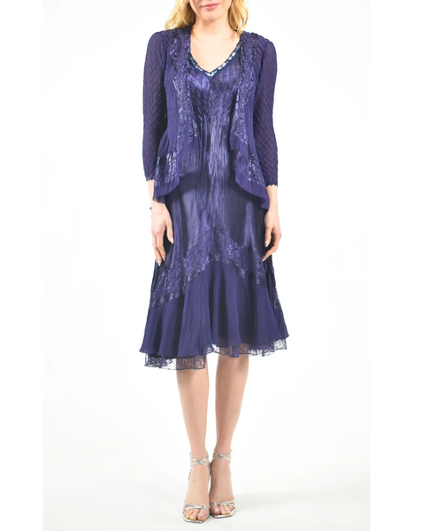 • Robe à boutiques volants Komarov en perles charmeuse et mousseline avec veste taille M 452€*1549